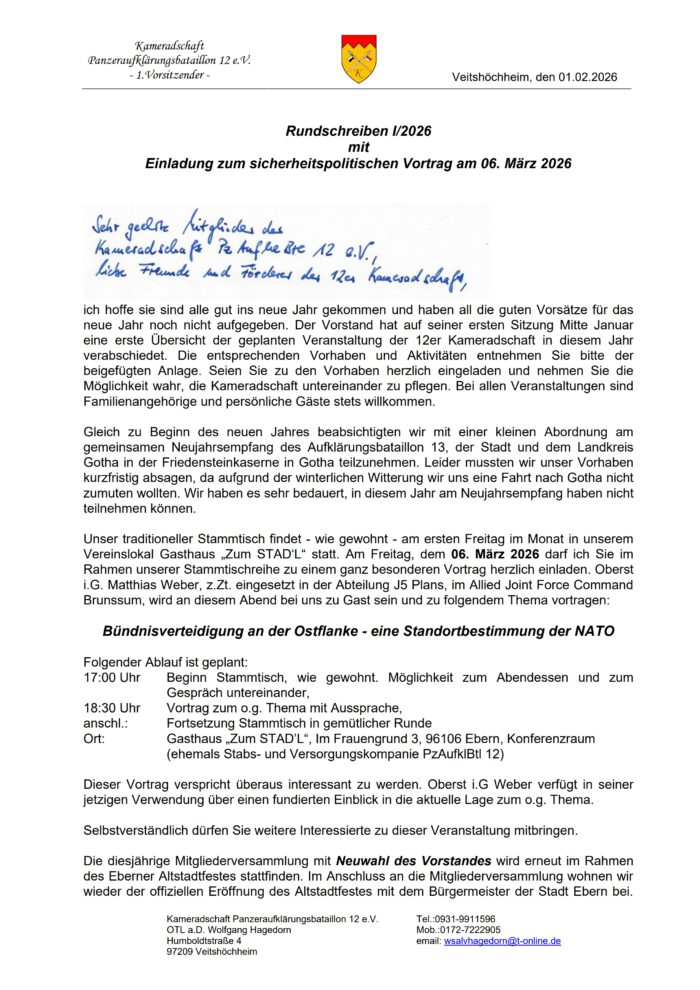 Kategorien News Rundbrief 1 / 2026 Beitragsautor Von CMSAdmin Veröffentlichungsdatum 2. Februar 2026 Keine Kommentare zu Rundbrief 1 / 2026 E-Mail teilen merken teilen ← 12er Stammtisch Schreibe einen Kommentar Antwort abbrechenDeine E-Mail-Adresse wird nicht veröffentlicht. Erforderliche Felder sind mit * markiertKommentar * Name * E-Mail-Adresse * Website